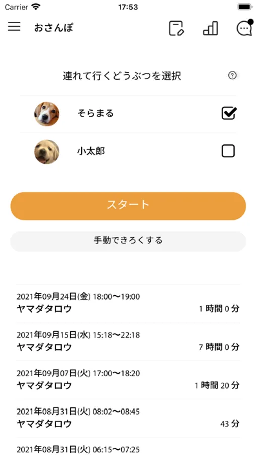 毎日の「ごきげん・ごはん・うんち」をスタンプで簡単入力。その他にも、気になる事などをコメントや写真で記録することもできます。