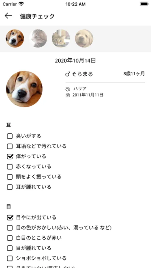 定期的に、元気が無いとき、活動量が低下したときに「健康チェック」をしましょう。愛犬・愛猫・オス・メス毎に適した健康チェックができます。