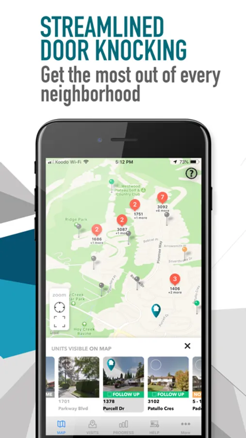 The live map allows you to see your own location, as well as detailed address information for homes around you, making it easy to go door to door and generate leads. If you need to, you can even change address information on the go and see which houses you’ve already visited, or those which require a follow-up.
