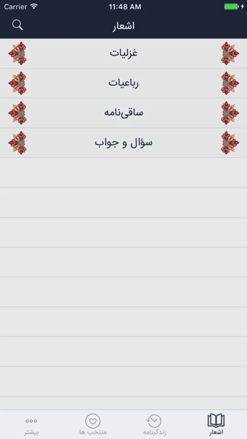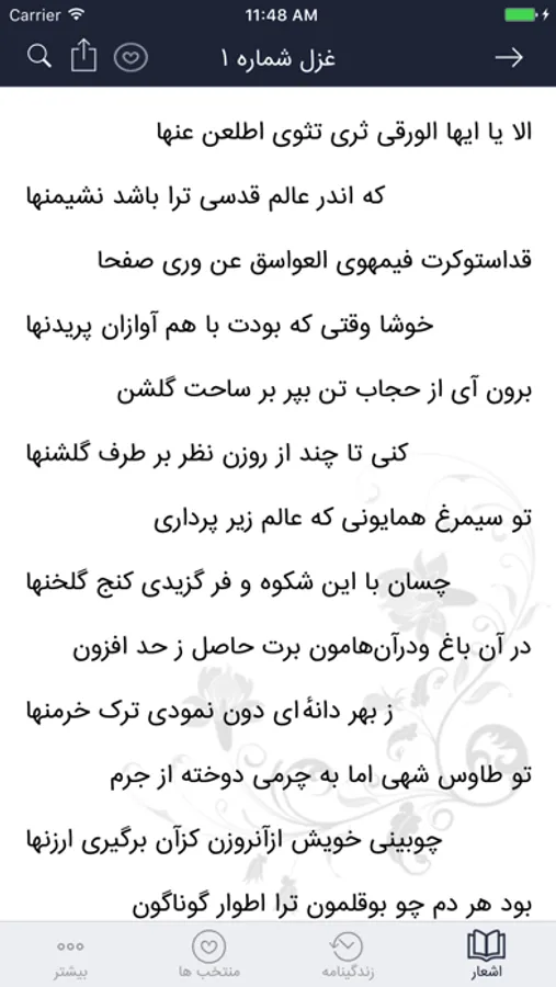 - شعرهای مورد علاقه ی خود را میتوانید درقسمت «اشعار دلخواه» ثبت کنید