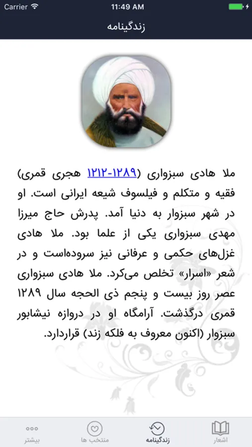 هادی سبزواری (۱۲۱۲–۱۲۸۹ هجری قمری) دانشمند علوم اسلامی و فیلسوف معروف و شاعر و فقیه ایرانی است - ملا هادی غزلهای حکمی و عرفانی سرودهاست و در شعر «اسرار» تخلص میکرد