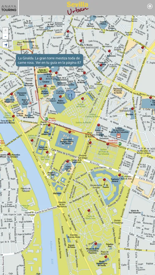 Consiste en un plano offline donde se ubican los lugares de interés especial, considerados imprescindibles en una visita a Sevilla. El GPS te localizará en todo momento mostrándote esos puntos a tu alrededor, sin la necesidad de tener conexión a internet ni pagar tarifas a operadores.
