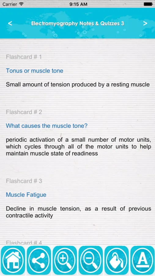 This app is a combination of sets, containing practice questions, study cards, terms & concepts for self learning & exam preparation on the topic of Electromyography (EMG).