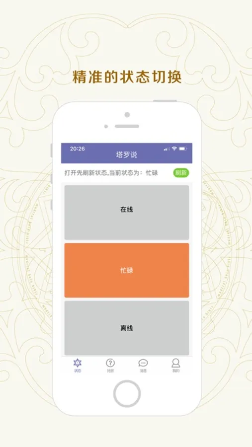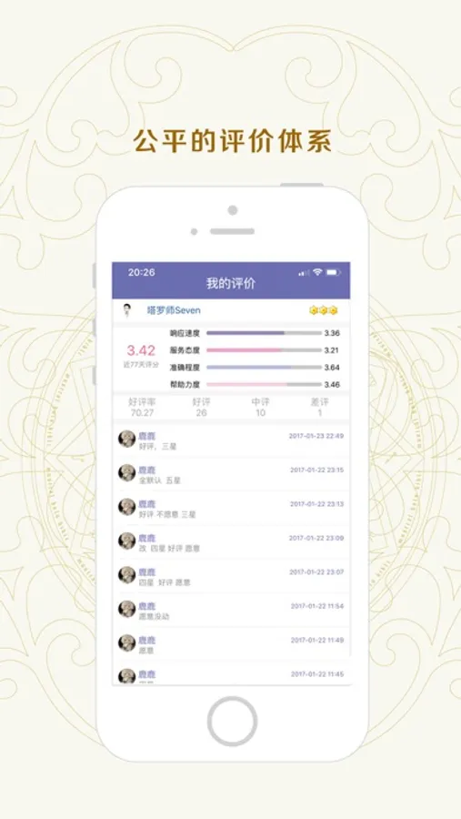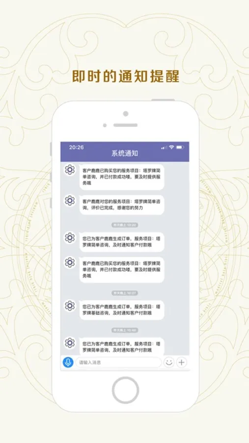 咨询师工作服务平台,整合塔罗师、占星师、周易师资源,通过一对一即时交流服务顾客,客户由系统自动分配,独创四维满意度体系,跟踪咨询师服务质量。精准的上线/下线切换,满足咨询师日常生活和工作业务转换的需求。