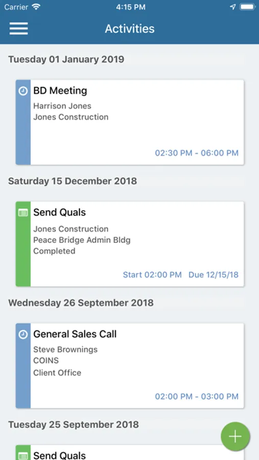 * Use the Activities screen to view and manage recent, current and upcoming Appointments/Meetings and Tasks. You can add and update meetings and tasks within Companies and Opportunities as well.