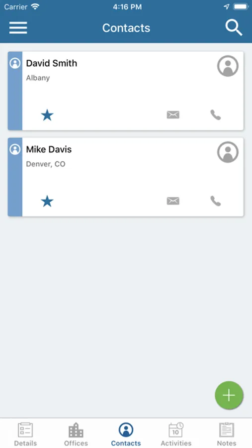 * Manage contact information from either the Contacts Workbench or the Contacts tab of a Company.