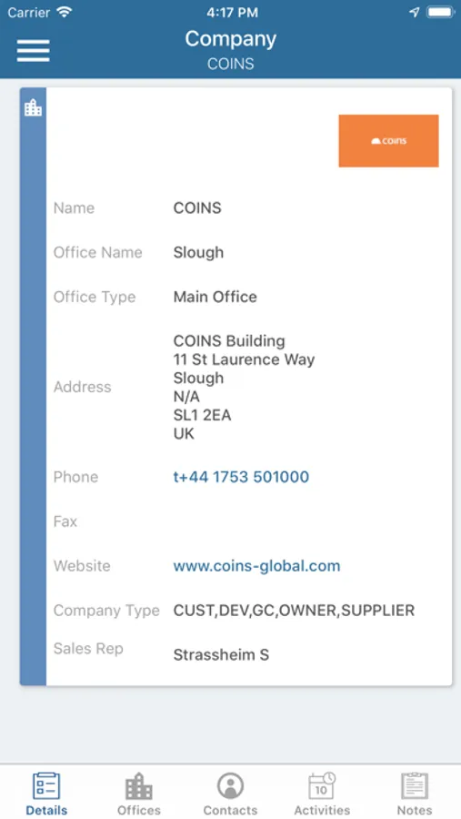 Designed for use by today’s mobile construction sales force, COINS mCRM lets you access marketing Opportunities, Companies, Contacts and Activities on the go, for a faster, more customer focused and more competitive experience.