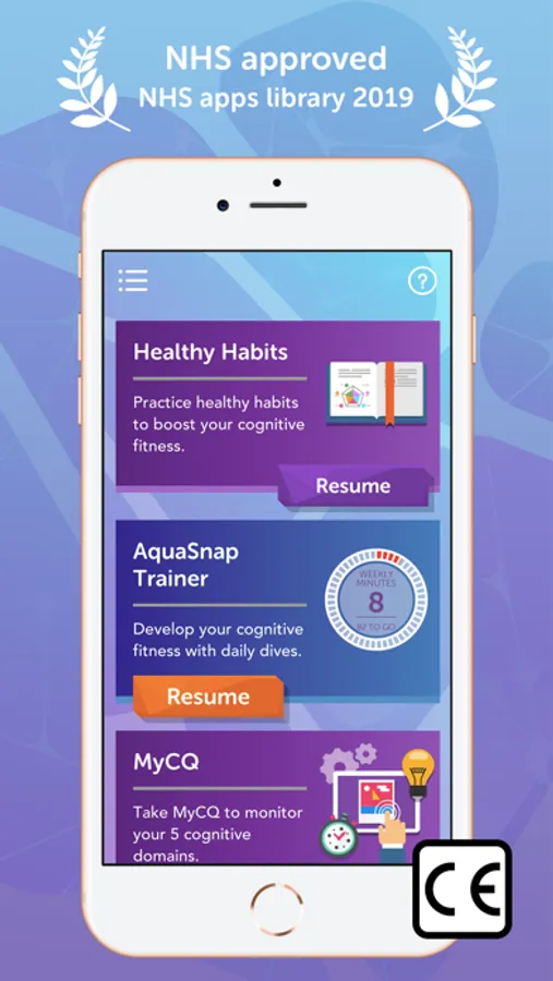 MyCQ then personalises the training app, AquaSnap, to ensure training is focused more intensely where most needed. As part of your cognitive fitness journey, the Healthy Habit programme is added to improve your lifestyle around Sleep, Hydration, Nutrition, Exercise and Social Relationships.