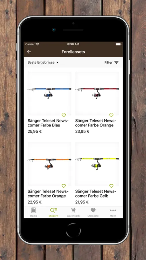 Holen Sie sich jetzt die App mit allen aktuellen Angeboten rund um das Thema Angeln: egal ob komplett einsatzfertige Angelsets, Angelrollen, Angelruten oder technisches Zubehör wie Bissanzeiger oder jede Art von Angelködern wie Pilker, Twister, Wobbler oder Boilies. In unserem Shop finden Sie das passende Angebot in bester Markenqualität: Ob Daiwa, Cormoran, DAM, Balzer, Spro oder Abu Garcia - wir haben Ihre Angelmarken im Sortiment.