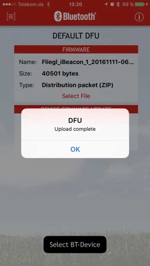 Fliegl DFU supports all our Bluetooth LE equipped Products. The most recent Firmware Bundle is already being shipped with Fliegl DFU. But of course you can use Fliegl DFU also for custom designed Firmware Bundles.