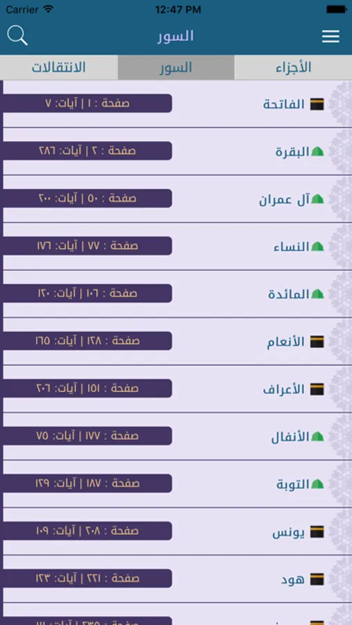 • إمكانية بدء القراءة من سورة أو صفحة أو جزء معين.