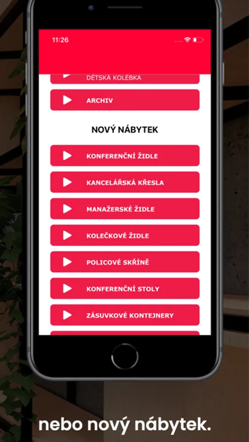 Bazar nábytku. Chytrá aplikace pro Váš komfort. Prostor pro dotazy, kompletní nabídka, formulář, kontakty nebo navigace.