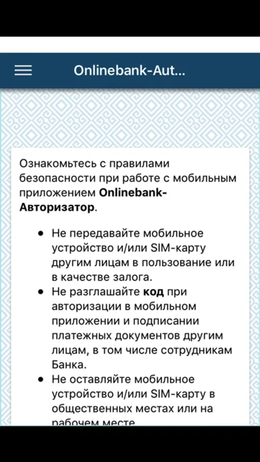 1. Необходимо ввести свой номер телефона зарегистрированный в системе Onlinebank.