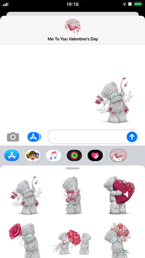 - Under the message compose field scroll horizontally to locate the Me To You Valentine's Day app icon and tap it