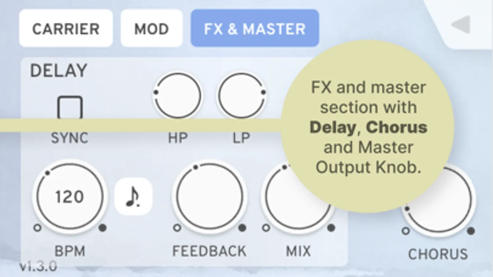 • Tempo synchronised stereo delay effect (with sync to host option)