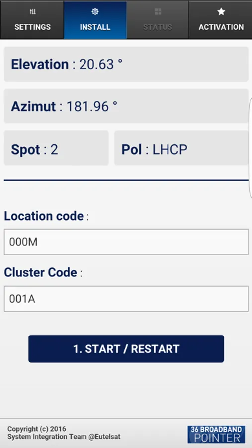 36 BroadBand Pointer is an application designed for 36° BroadBand antenna installers. It optimizes the antenna pointing, configure and activate the modem without a computer using a smartphone. The apps also allows to get an installation report with photos certified and secure.