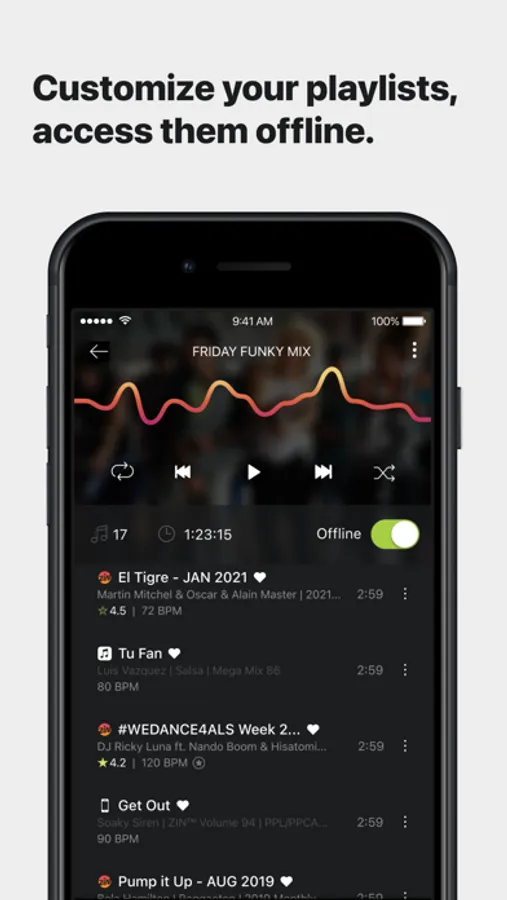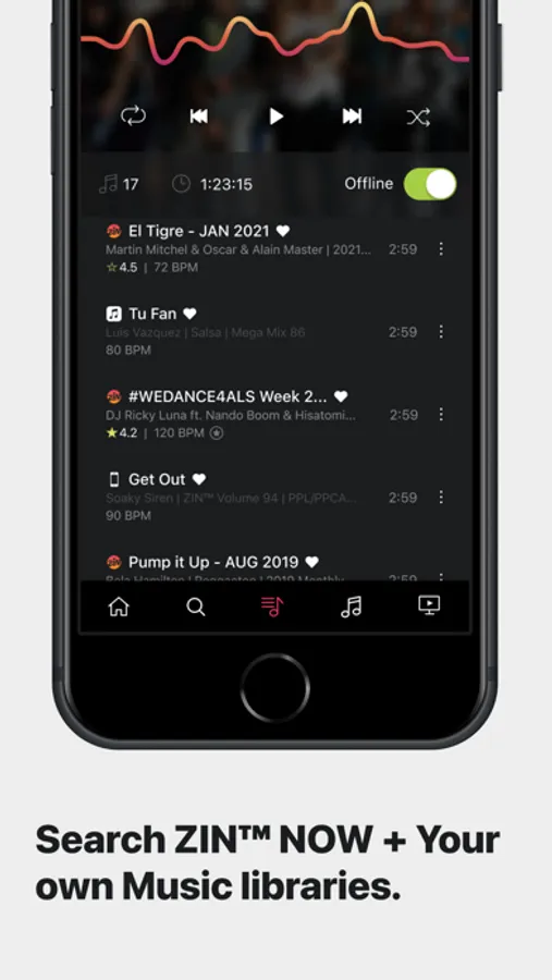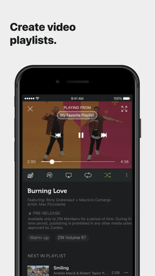 Even if you haven't made the switch to digital yet, you'll get content like Mega Mix choreo, plus specialty and bonus videos. Your favorite content from ZIN™ Now automatically syncs with ZIN™ Play without missing a beat. The best part? You can access your playlists in class without needing Wi-Fi or mobile data.