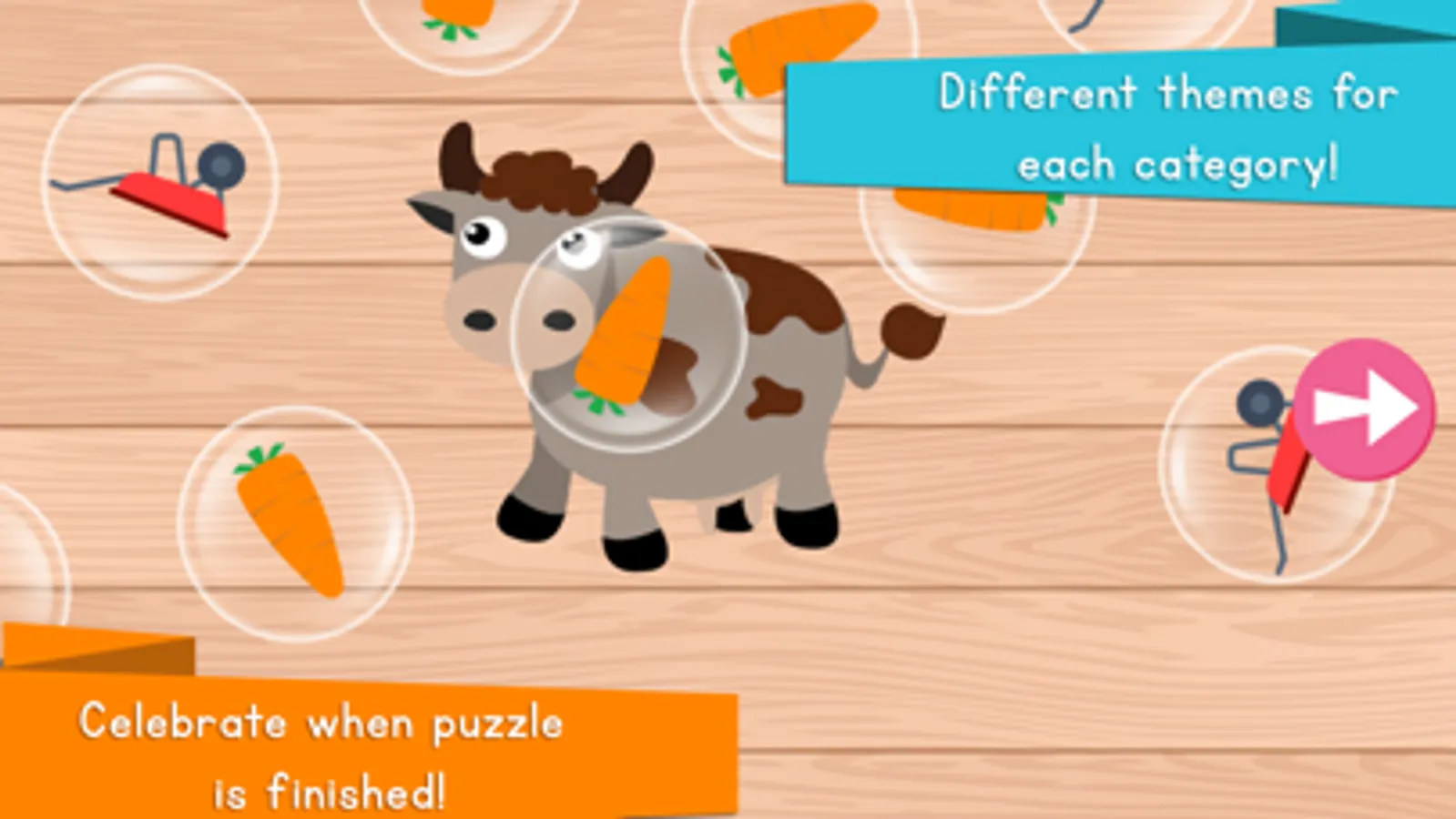 This puzzle game for kids helps your kids develop matching, tactile and fine motor skills while playing more than 90 different Animals Puzzles in 8 categories - safari, farm, forest, sea, birds, small friends, sea 2 and dinosaurs. The game includes animations, pronunciations, sounds of animals and interactivity for easy learning. It will teach your kids all animals and yet you will never be worried about them losing any piece of the puzzles! No more cries and missing pieces!