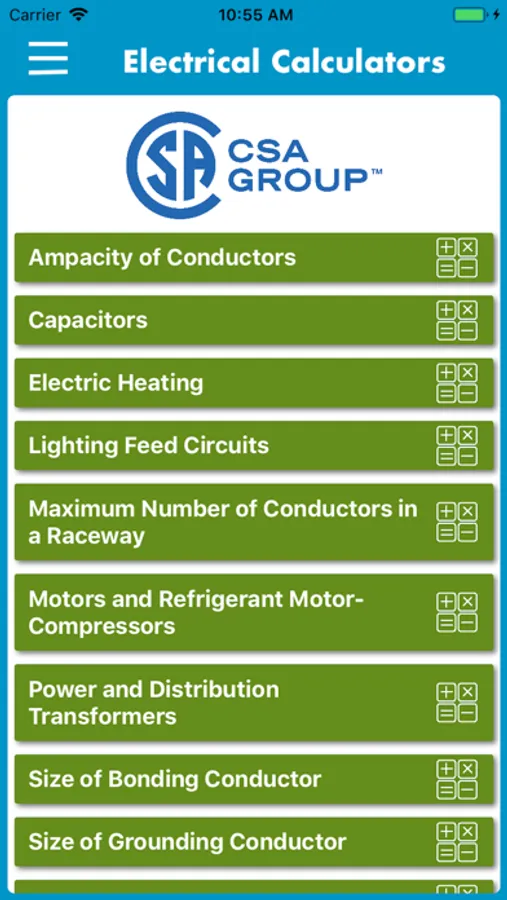 The Electrical Calculator based on the 2018 version of the Canadian Electrical Code, contains 11 key comprehensive calculations: