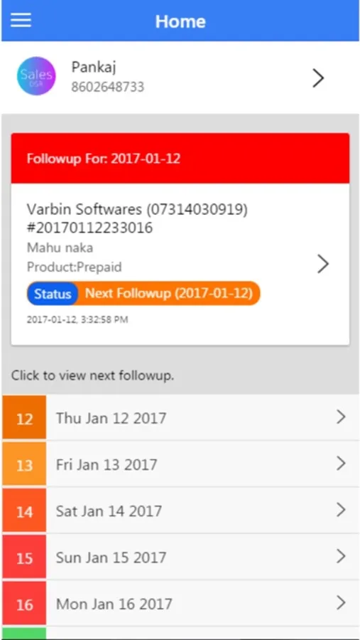 follow-up will arise on your front screen according to date.