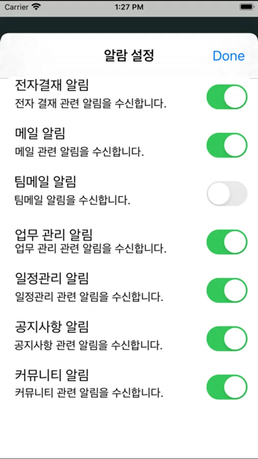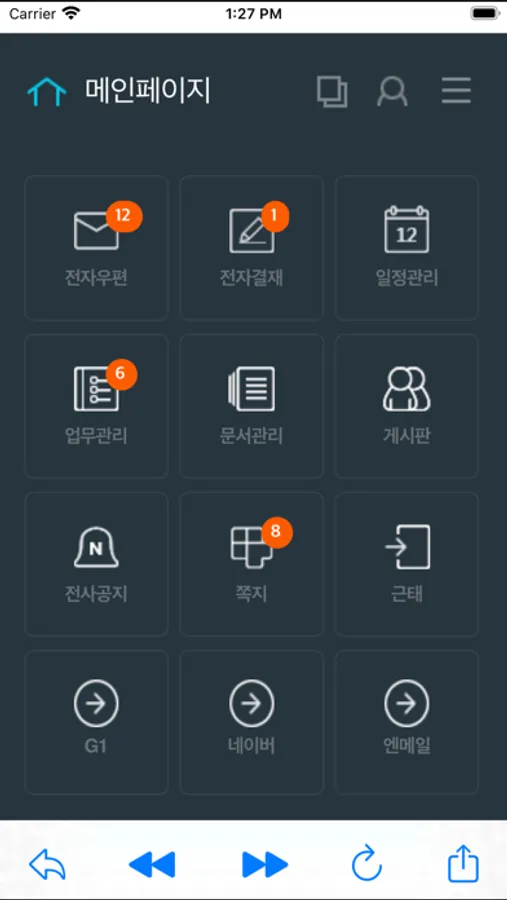 모바일 버전을 통해 전자우편,일정관리,전자결재,업무보고,공지사항등의 사용이 가능하며 푸시기능 지원으로 메일과 결재등의 알림을 받아 보실 수 있습니다.
