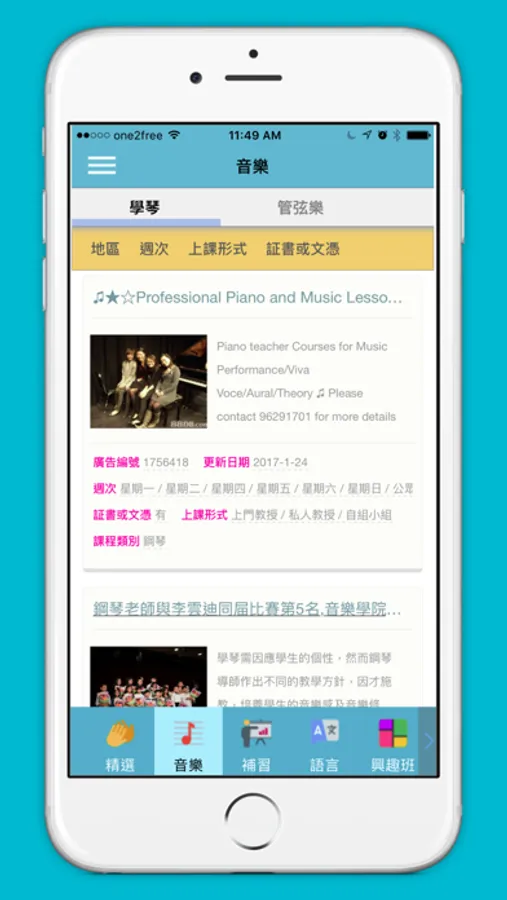 4. 音樂課程 - 樂理、鋼琴、大中小提琴、結他、長短笛、單簧管、色士風、聲樂、鼓及敲擊樂...等等