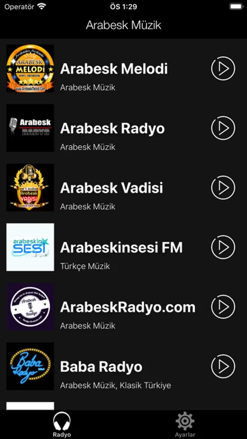If you are looking for radio stations to listen turkish music and arabesque music in its purest state we recommend: Baba Radyo, Arabesk Radyo, Radyo Arabesk Türk, Metropol FM Arabesk, Kral Türk FM, 1001 FM, Radyo Cinar, Tempo Radyo, Mamas FM Arabesk Radyo, Arabeskinsesi FM, Arabesk Vadisi, Damar Radyo, Radyo Kadirga, Radyo Arabesk Alemi, Radyo Nefes, Arabesk Radyo Krallari, Damar Radio, Keyf Arabesk, Ilac Damar FM, Hayal FM, Radyo Arabesk, Anadolunun Sesi Radyosu, Radyo ArabeskTürk, RadyoDamar, Radyo Mazi, Arabesk Melodi, Radyo Katibim, Imparator FM, Radyoafet, Alemin Radyosu, Radyo Bergama, Radyom Arabesk, Radyo Terapi, Radyo Online, Jilet FM, Damga FM 91.7 and Radyo44. Where music programming is focused to almost all time to arabesque songs.