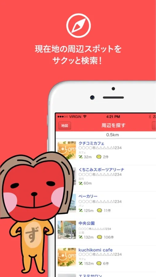 2,400件以上のスポット情報から現在地周辺のスポット検索はもちろん、スポットにチェックインしたり、クチコミや写真の投稿もできちゃう楽しくて便利なアプリです!