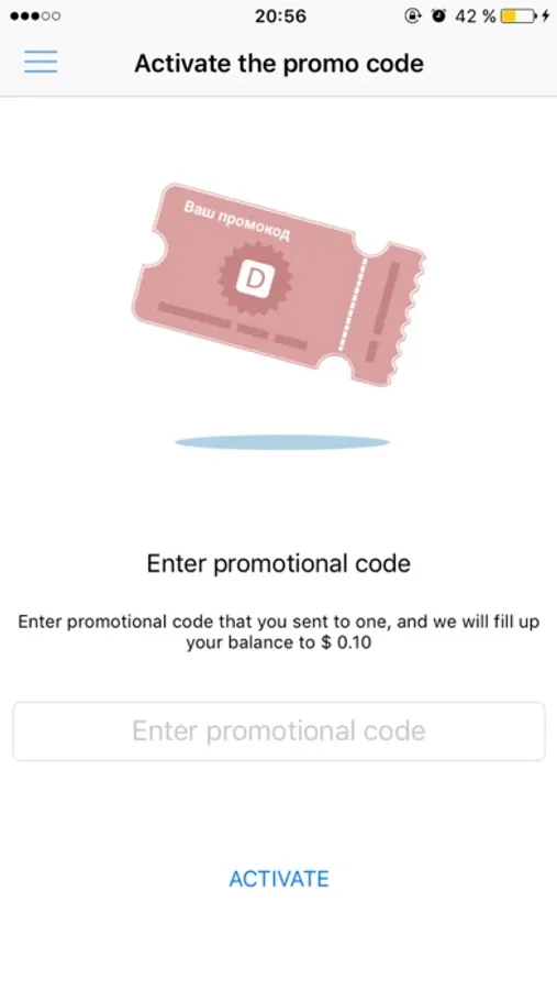 - Bonus for your friend’s promo code actuation – $ 0.10.
