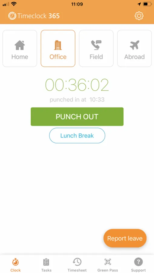 *Download Timeclock 365 app or access the web portal and tap “Punch in”. Timeclock 365 will record your IP and location and will run on the background while you work. When you finish working, just press “Punch out”, that’s all it takes.