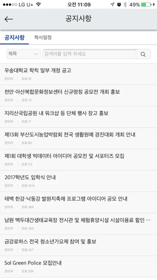- 성적조회, 수강신청내역조회,등록/장학내역 조회
