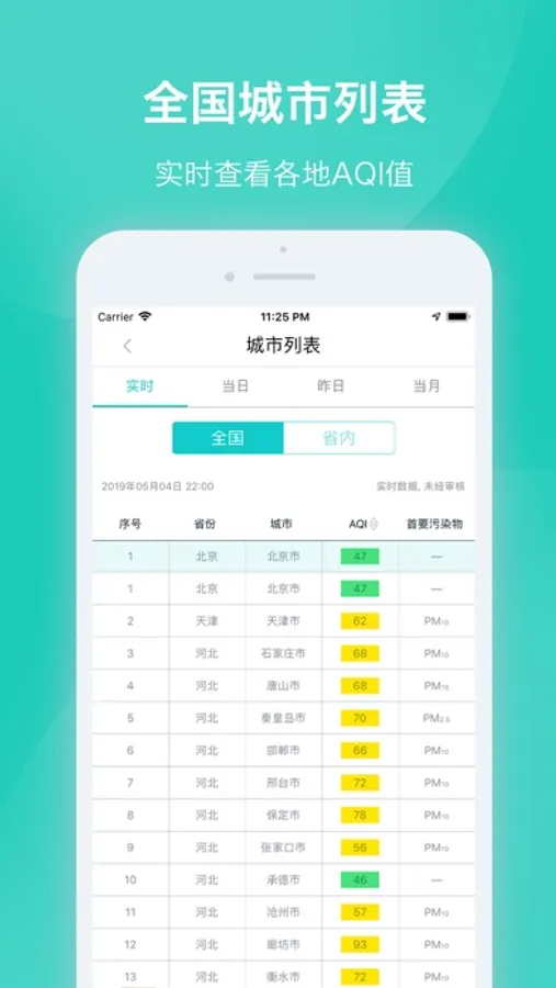 *城市空气质量状况实时发布:随时掌握关注城市的空气质量情况,向公众提供出行及健康指引,数据更新最及时。