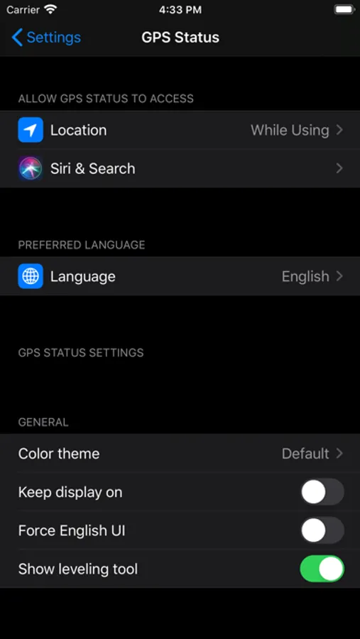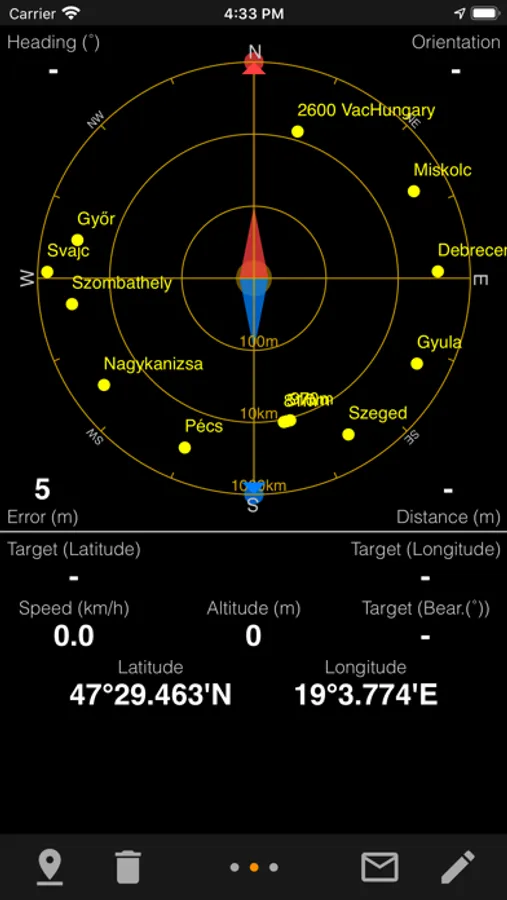 Tools provided: compass with magnetic and true north, leveling tool, waypoints. You can mark or share your location using the Radar (especially useful for geocaching or quickly saving your actual position).