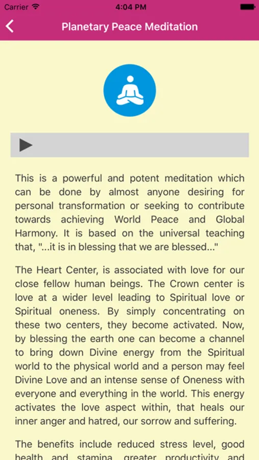 YPV Sadhana is an application by Yoga Prana Vidya group for helping people understand, learn and practice various Sadhanas or spiritual practices for improving their physical, emotional and mental conditions. You can learn Rhythmic Yogic Breathing to charge up your body in just 5 minutes, with a lot of other benefits. You can enjoy and harmonious relationships with everyone by mastering the art of forgiveness. You can learn Planetary Peace Meditation and not only get tremendous benefits from the Spiritual energies generated during meditation but also become a channel to spread peace, love, kindness and spirit of forgiveness in the world.