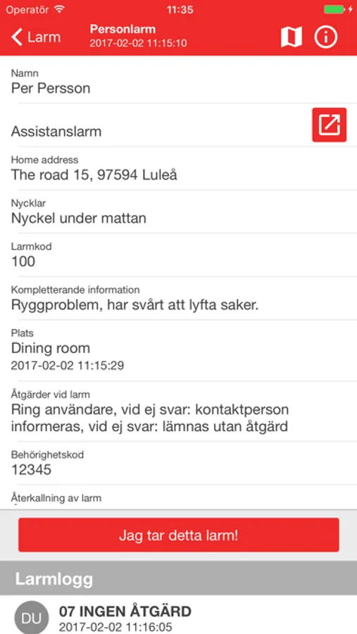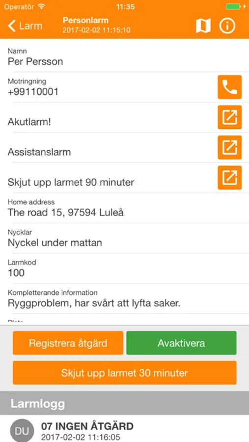 Med appen Telenta Symphoni skapar du en snabb och effektiv larmhantering där larm sänds direkt till den som har möjlighet att agera, utan inblandning av någon larmcentral. Larmmottagarna ser alla inkommande larm på sina mobiltelefoner i form av en larmlista med både kart- och navigationsstöd. Det här är en trygg, enkel och kostnadseffektiv lösning, t.ex. när det är naturligt att kollegor griper in och gör den första åtgärden.