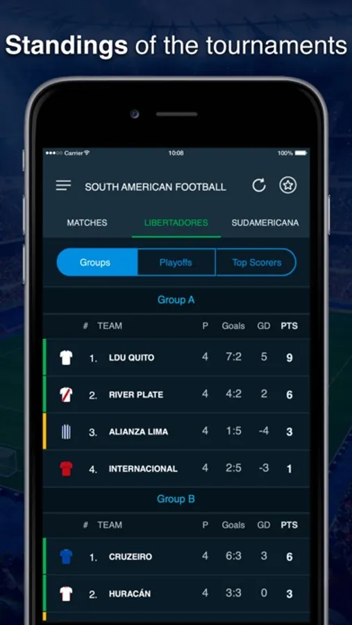 Scores and stats of Copa Libertadores and Sudamericana 2020 Edition, in one place, teams, results, standings, top scorers and more. Check the schedule of matches in the time of your country and follow your favorite team on your phone anytime, anywhere and any device.