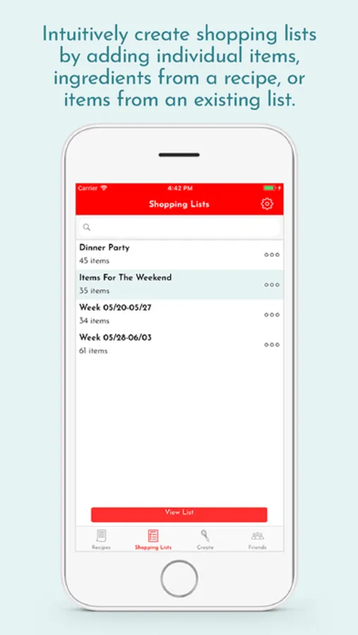- Create shopping lists from individual items, ingredients from a recipe, or other shopping lists