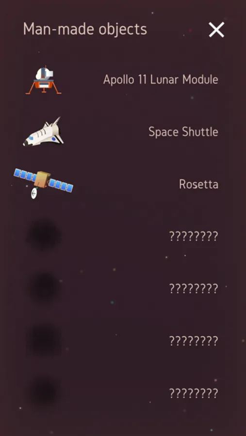 Unlock cosmic objects which give you certain advantages in the game, collect points, start cosmic events and collect man-made space objects like the space shuttle!