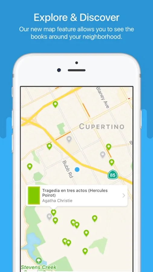 See books other people want to exchange nearby and swipe up when you see a book you like. Tap to see the details.
