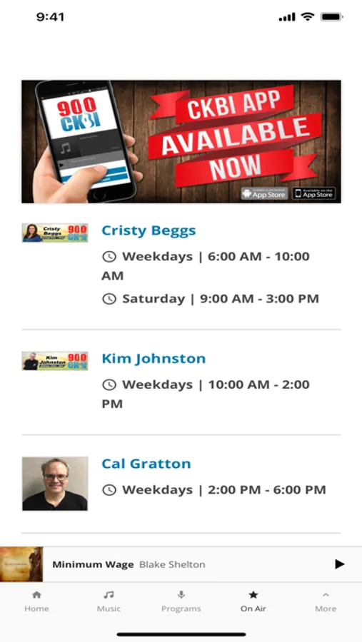 CKBI plays Country music. Not just any Country music...only the Hottest Country Music! CKBI is where you’re likely to hear some Grammy Award® winning artists like Carrie Underwood, Brad Paisley, Keith Urban, Blake Shelton, George Strait, Rascal Flatts, Zac Brown Band and many more of today’s hottest artists. You won’t hear any tired old Country or Pop music. You’ll only hear the best Country music from 2000 to today and the occasional throwback to the 90’s. CKBI is Saskatchewan Country!