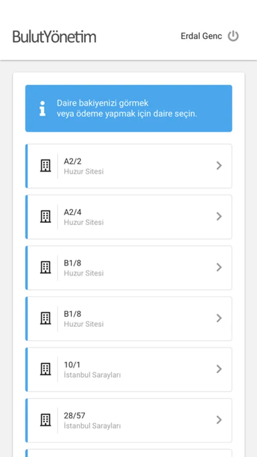 * İlgili olduğunuz tüm daire bilgilerine tek bir ekrandan ulaşabilir,
