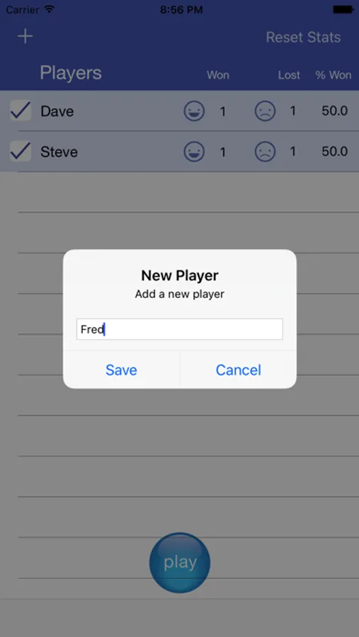 Members are easily added (+) or removed with a left swipe and statistics for "wins" and "losses" are archived for each member of the group.