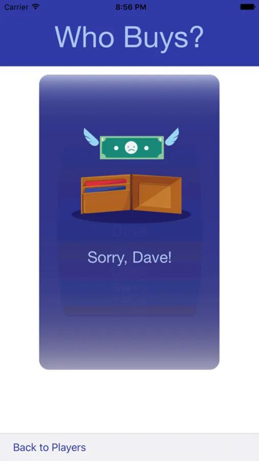 By the random spinning of a roulette-style wheel, this app enables a group of 2-20 friends to decide who pays for coffee, a round of drinks, that bottle of wine, or even who performs a particular task.