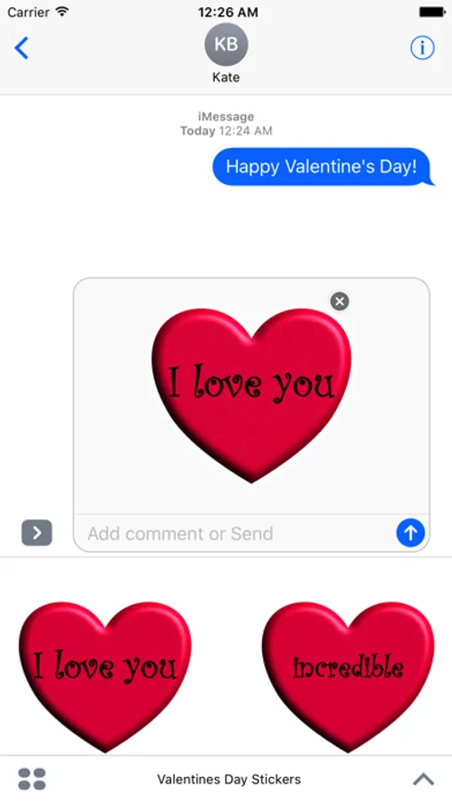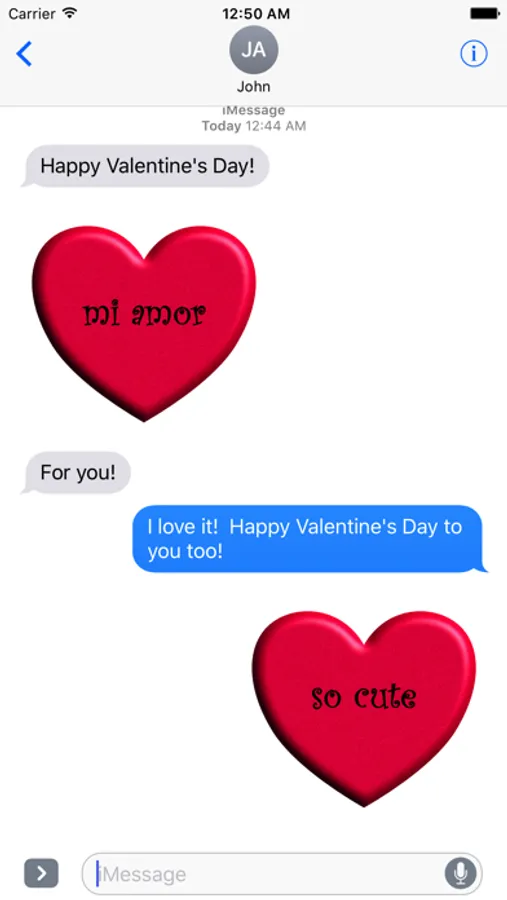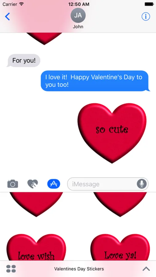 Happy Valentine's Day Stickies contains a set over 125 large valentine's day stickers for use with iMessage. Have fun and Happy Valentine's Day!