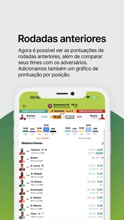 Here you can follow in real time with the classification in each league of your Cartola, you can also follow the classification by Patrimony, Championship, Turn, Month and Round of the hat.