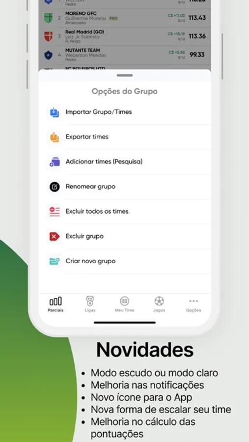 See the parts of your team and the teams of your friends in real time, take the opportunity to give that usual zada, share the Partitions of the top.