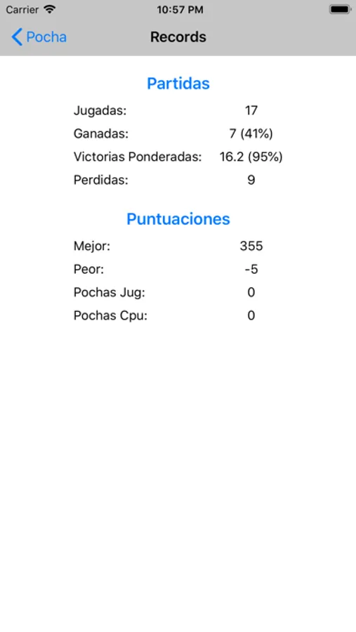 - Records: Partidas, pochas, mejor y peor puntuación,... (incluye clasificación mundial)