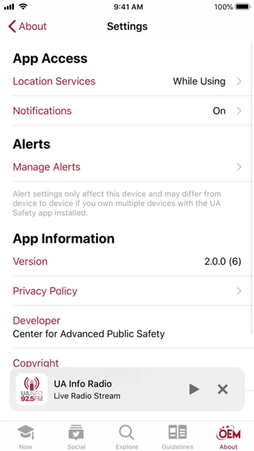 UA Safety is the official University of Alabama app for campus safety and emergency information.