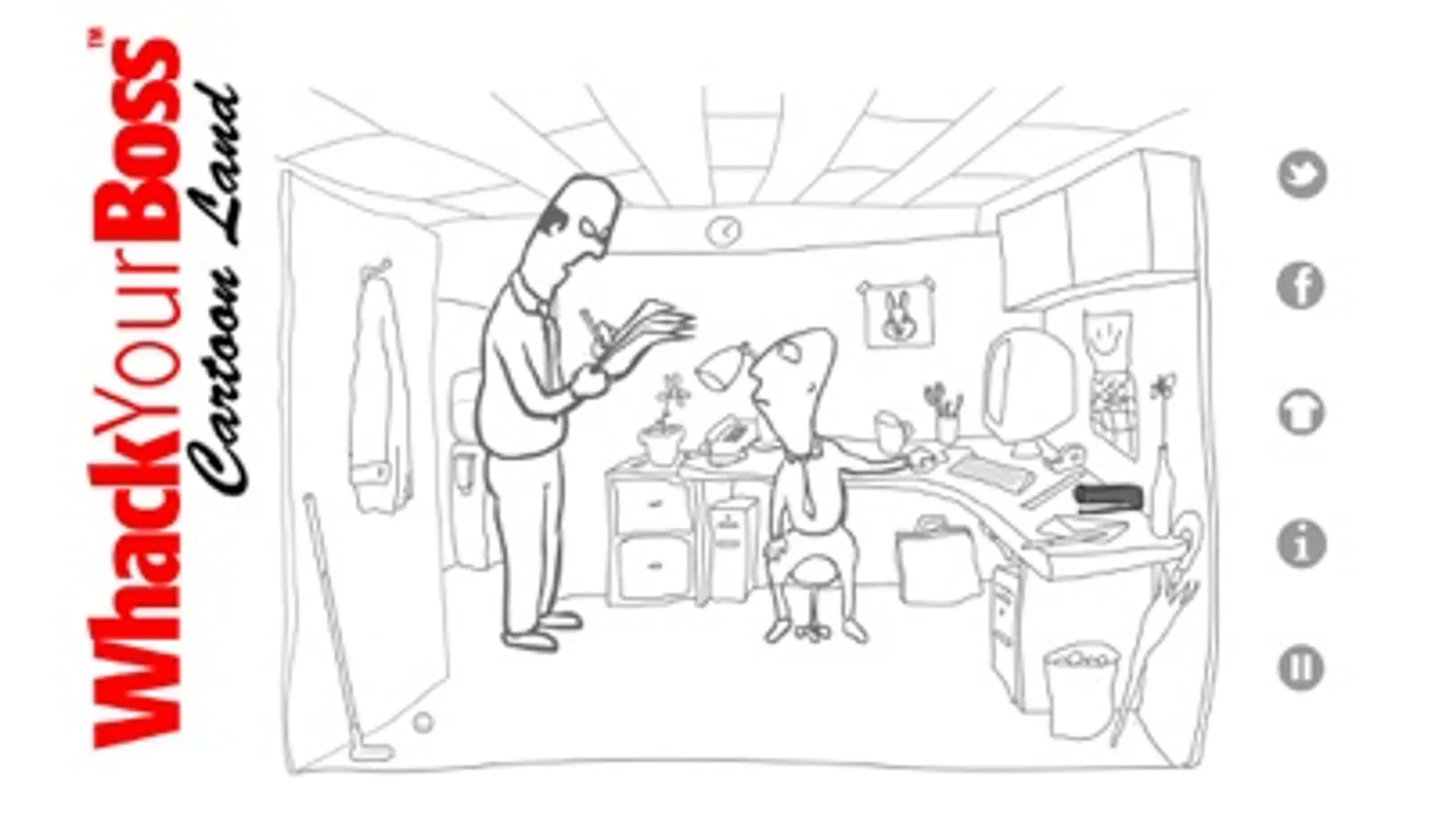 Play this classic game now with super crazy cartoon whackings! Feeling angry on the job? Release all your rage safely with Whack Your Boss ~ Cartoon Land the classic game with kooky cartoon curiosities. We don't want to give away the surprises so we kept the preview scenes to a minimum. Search for all the ways to whack the boss and feel your tension slowly drift away into a mist of love and acceptance. Created by former Simpsons animator Tom Winkler this twist on his classic game is sure to please with irreverent humor and great animation. More cartoon whackings coming soon!