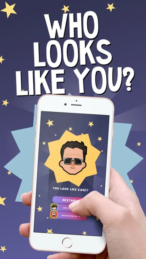 In game you must will see Blogger, who name is Casey Neistat, Larin, Yango, etc. This app compares your habits and talent with the habits of your idols, and determines with whom you have the most matches. This app This app will give you the confidence to create your own blog, dial million subscribers and millions of likes. This application is rather a joke, which you can play friends. Have a nice time!